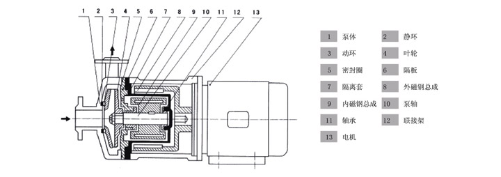CQ型工程塑料磁力驅(qū)動(dòng)泵(簡(jiǎn)稱(chēng)磁力泵),是將永磁聯(lián)軸器的工作原理應(yīng)用于離心泵的新產(chǎn)品,主要材料增強(qiáng)聚丙稀工程塑料。設(shè)計(jì)合理、工藝先進(jìn),具有全密封、無(wú)泄漏、耐腐蝕的特點(diǎn),其性能達(dá)到國(guó)外同類(lèi)產(chǎn)品的先進(jìn)水平。