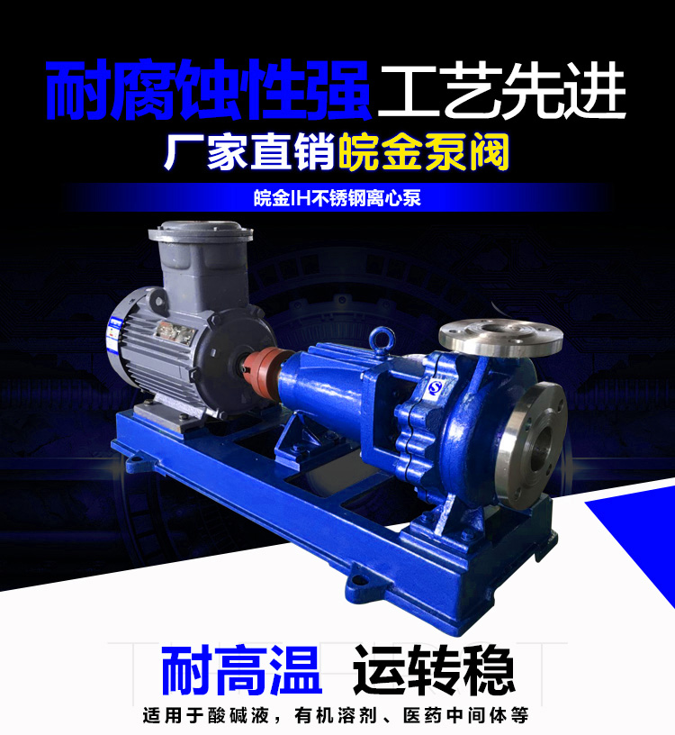 IH型化工泵是單級單吸懸臂式離心泵,其標記額定性能點和尺寸等效采用國際標準ISO2858-1975(E),是一種用以取代F型耐腐蝕泵更新?lián)Q代的節(jié)能產(chǎn)品,適用于化工、石油、冶金、電站、食品、制藥、合成纖維等部門輸送溫度在-20℃~105℃的腐蝕性介質(zhì)或物理、化學性能類似于水的介質(zhì)。
